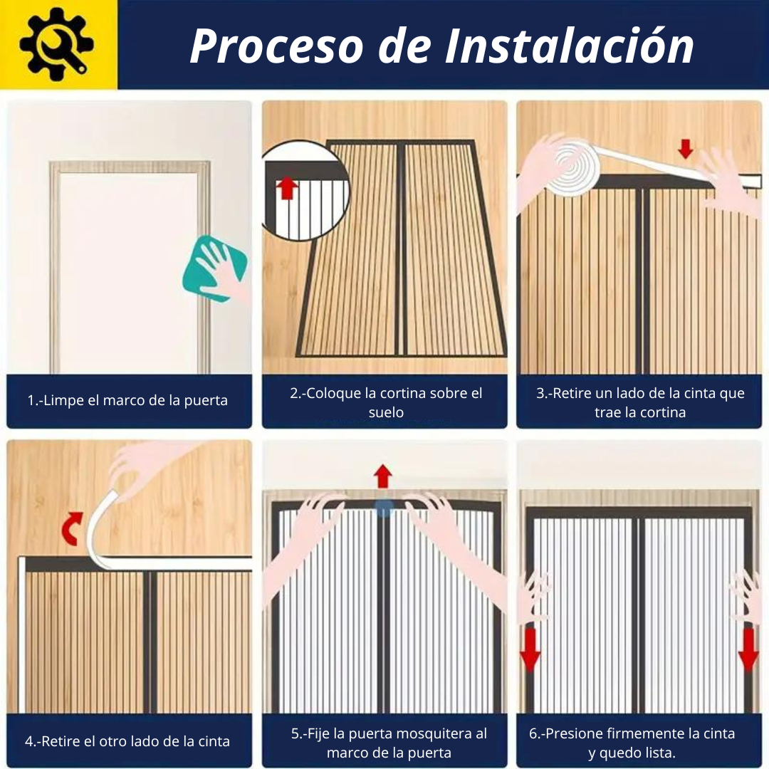 Fácil de instalar gracias a su diseño intuitivo. Simplemente sigue los pasos indicados para fijarla en el marco de tu puerta, y en minutos tendrás una barrera efectiva contra los insectos. No se requieren herramientas complicadas ni conocimientos especializados, lo que hace que la instalación sea rápida y sin estrés.