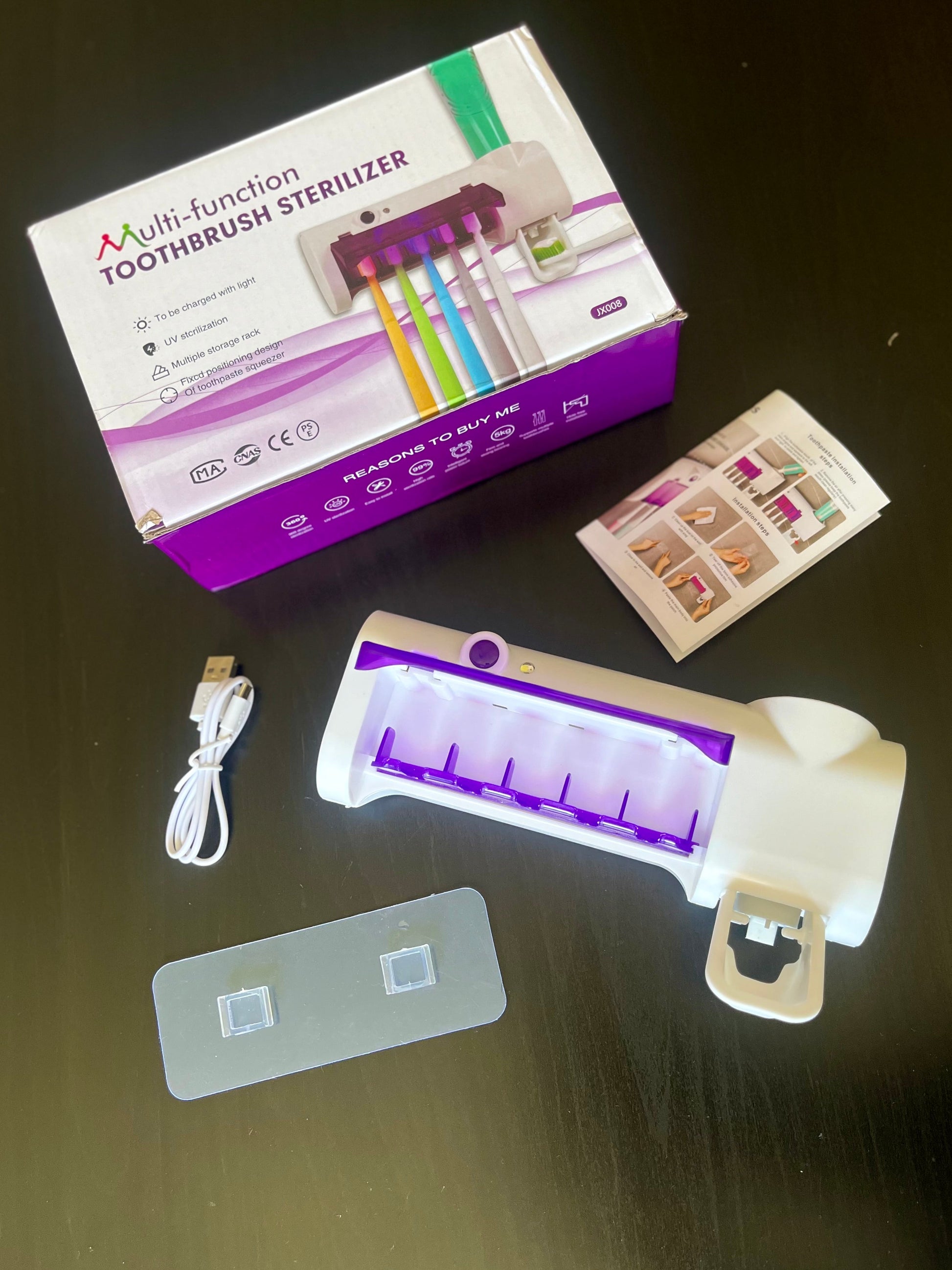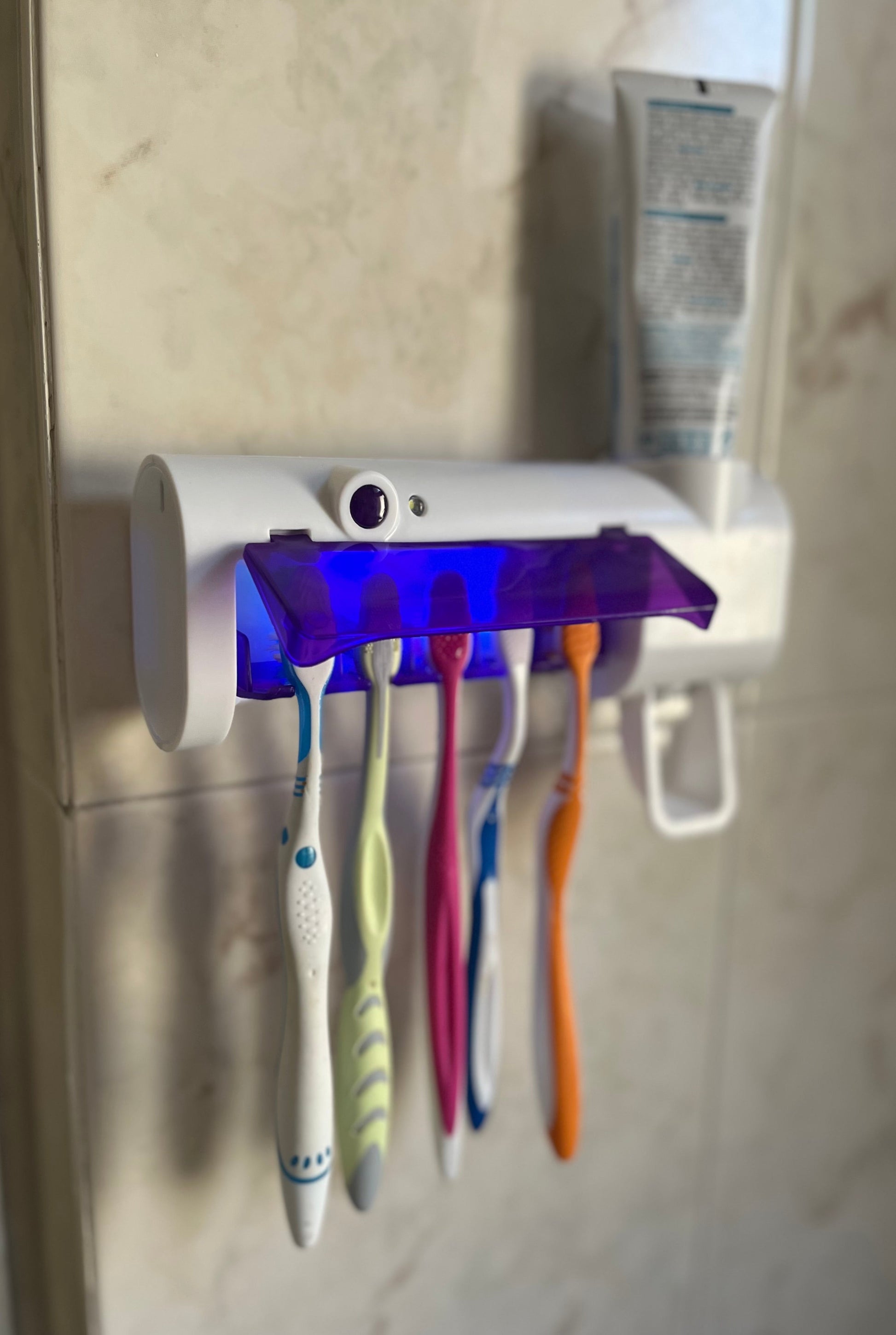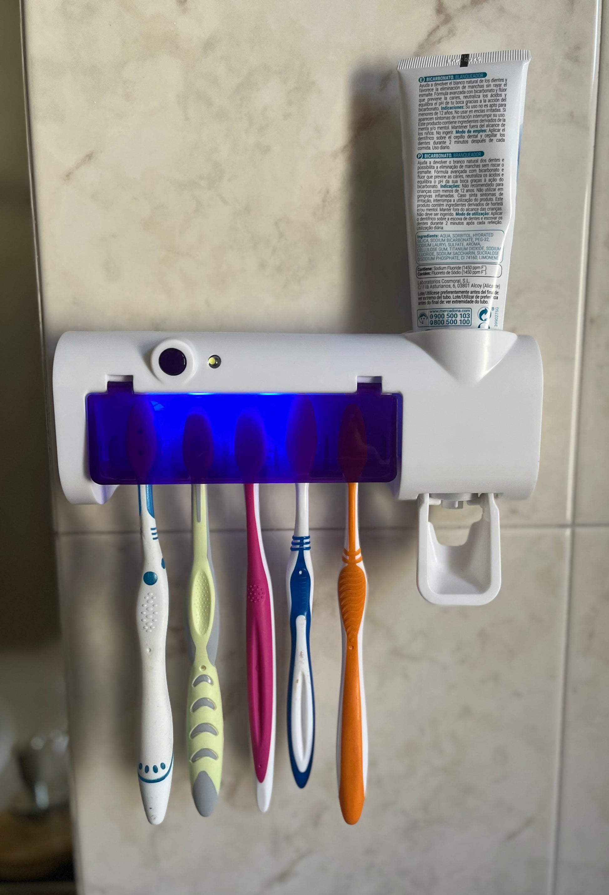 Mantén tus cepillos de dientes libres de bacterias con este innovador esterilizador UV, que elimina hasta el 99% de gérmenes en solo 6 minutos. Con capacidad para cinco cepillos, un dispensador automático de pasta dental y fácil instalación sin herramientas, es práctico, higiénico y perfecto para cuidar de tu salud. ¡Haz tu rutina más segura y eficiente ahora!