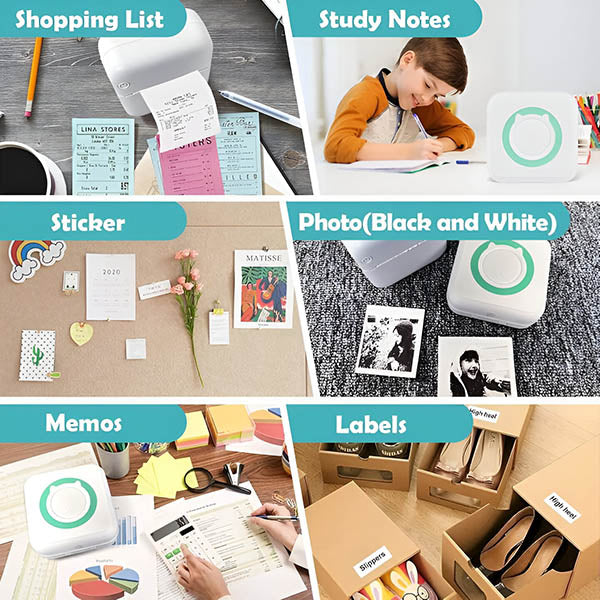 Emplea la impresión térmica, ¡lo que significa que no necesita tinta para imprimir! ¡Compatible con todos los teléfonos inteligentes del mercado!