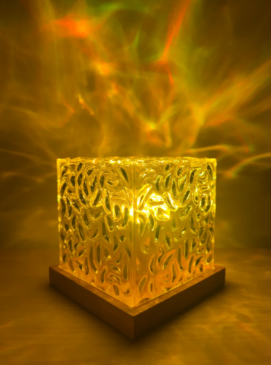 La lámpara AquaLumen recrea la magia de la aurora boreal con 16 colores vibrantes, control remoto RGB y conexión USB. Su elegante diseño combina un cristal duradero y una base de madera, creando un ambiente relajante y visualmente impresionante.