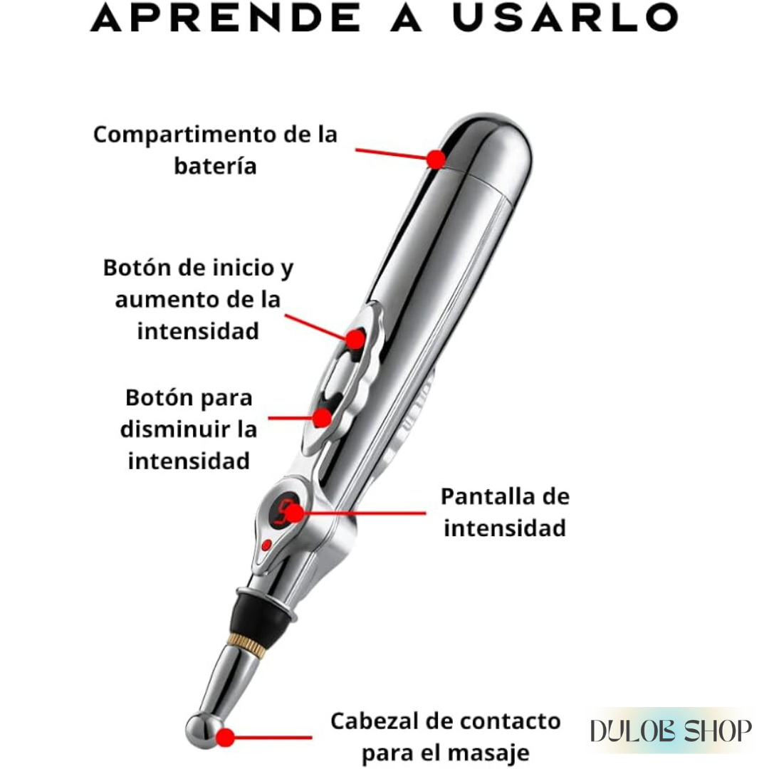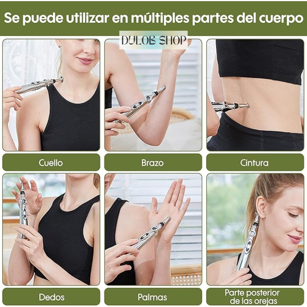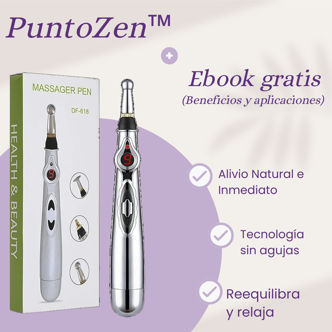 "Con su tecnología de acupuntura sin agujas, PuntoZen te ofrece alivio inmediato en los momentos en los que más lo necesitas. Diseñado para enfocarse en puntos de presión específicos, este lápiz de masaje permite relajarte, reducir el dolor y recuperar tu energía sin tratamientos costosos ni medicamentos."