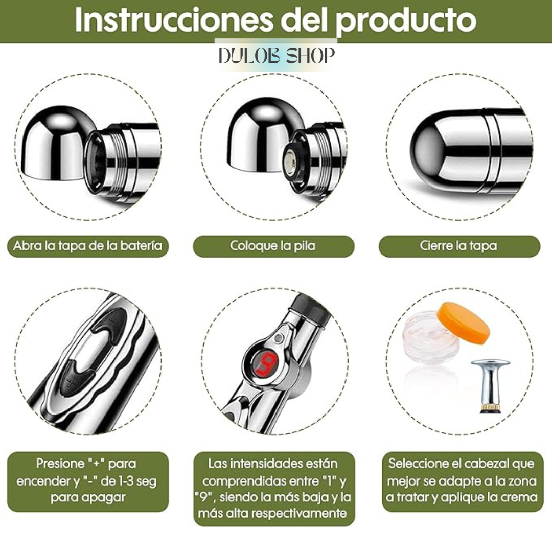 6. Fácil de usar: Su diseño tipo bolígrafo y sus tres cabezales de masaje permiten una aplicación precisa en cualquier área del cuerpo, proporcionando alivio inmediato con solo unos minutos de uso.