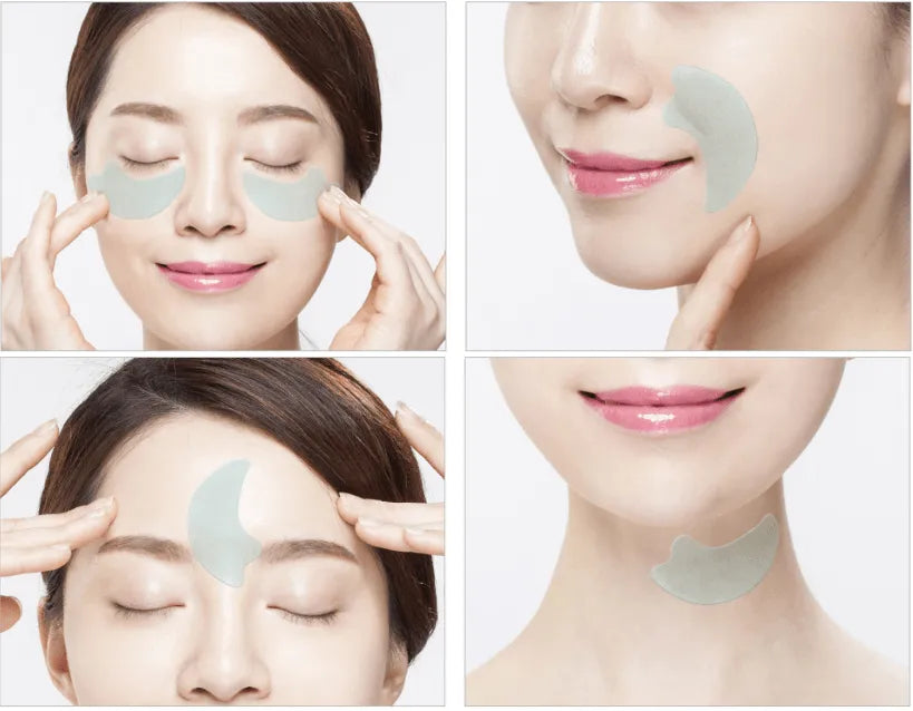 Toma los parches para ojos y colócalos suavemente en el área deseada, ya sea alrededor de los ojos, la frente, los labios o las mejillas. Deja actuar durante 15-20 minutos para obtener los mejores resultados.