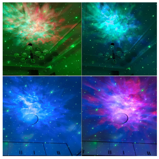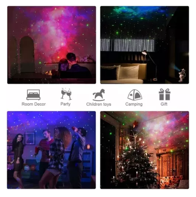 Úsalo como luz nocturna, luz ambiental o lámpara decorativa en cualquier espacio, desde el dormitorio hasta una fiesta. Este proyector es un excelente regalo para ocasiones especiales como Navidad, cumpleaños o Año Nuevo.