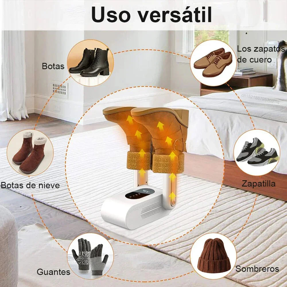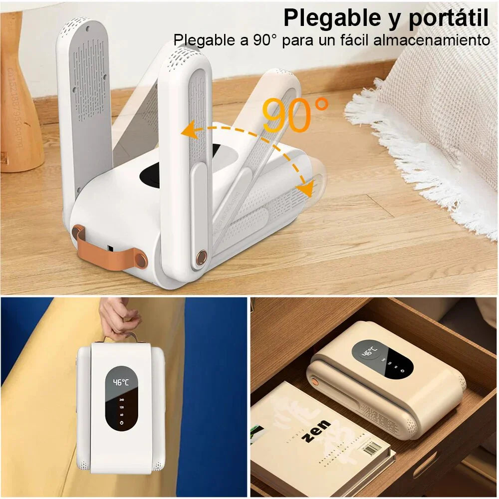 , el secador multifunción es portátil y versátil, lo que lo hace perfecto para llevarlo de viaje. Su diseño compacto y ligero permite que lo puedas empacar fácilmente en tu maleta y mantener tu calzado y accesorios secos donde quiera que vayas.
