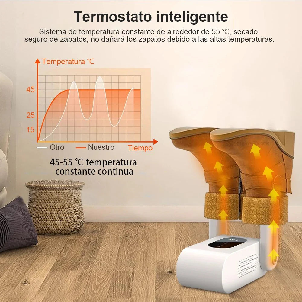 Con el secador multifunción , elimina la humedad, los malos olores y las bacterias que dañan tu calzado y tus accesorios. Seca y desinfecta rápidamente con tecnología UV y carbón activo . No dejes que la humedad te detenga: este secador es la solución para un calzado fresco y limpio.