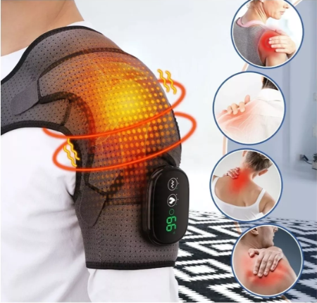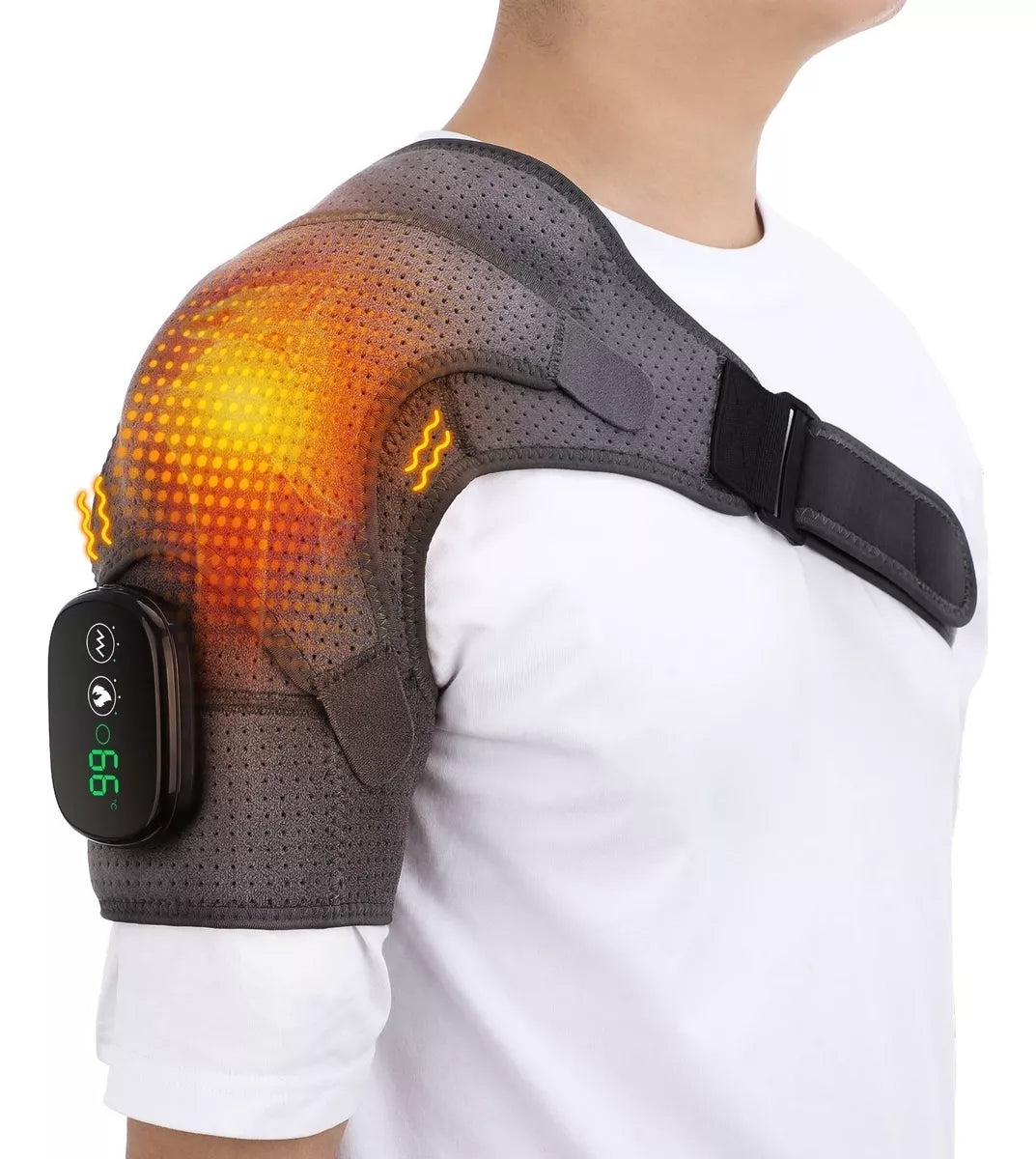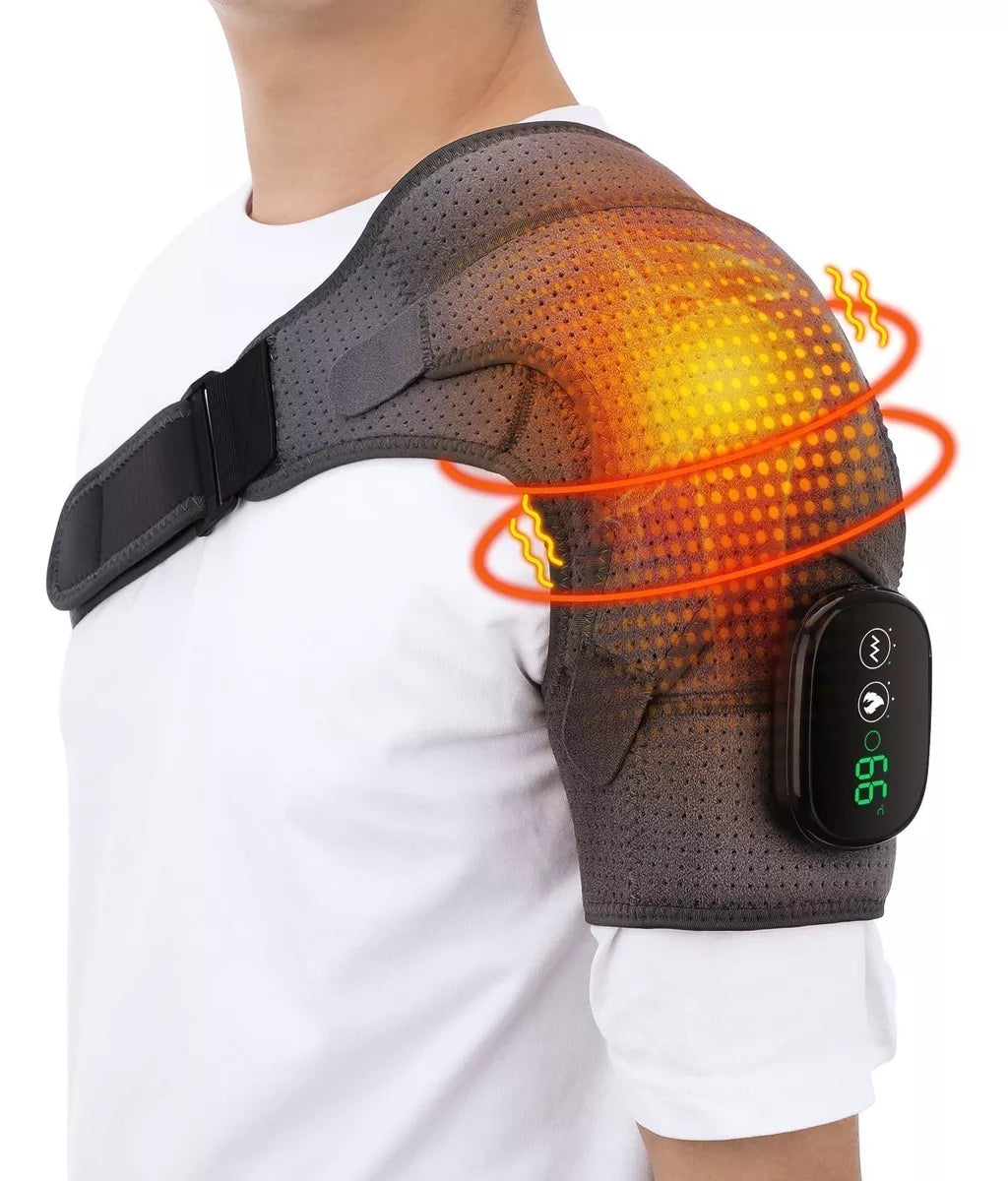 La hombrera utiliza una combinación de masaje vibratorio y terapia de calor para aliviar el dolor muscular, la tensión y mejorar la circulación sanguínea en la zona del hombro. Puedes ajustar la intensidad del masaje y la temperatura del calor fácilmente con el control remoto incluido.