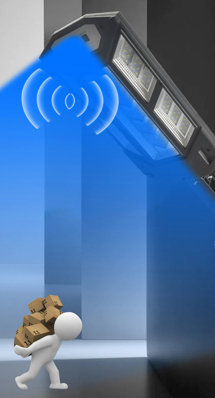 Dispositivo de detección de movimiento incorporado, esta luz solar al aire libre puede ser activada por humanos, animales, coches. Su distancia de detección es de 3-5 metros, el ángulo de detección es de 120°.